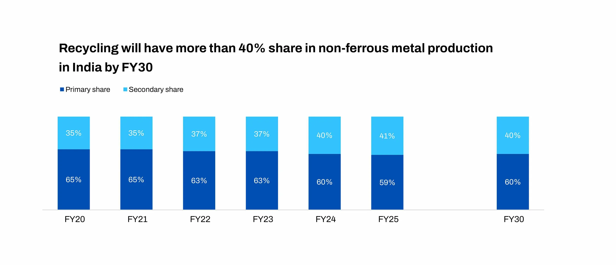 Parallel to primary expansion, the secondary non-ferrous ecosystem is strengthening. Production from recycling and scrap-based units is estimated to rise from 4.0 MT to nearly 6.2 MT by FY30, supported by improved scrap availability, formalisation of recycling networks, and a push toward circular manufacturing.