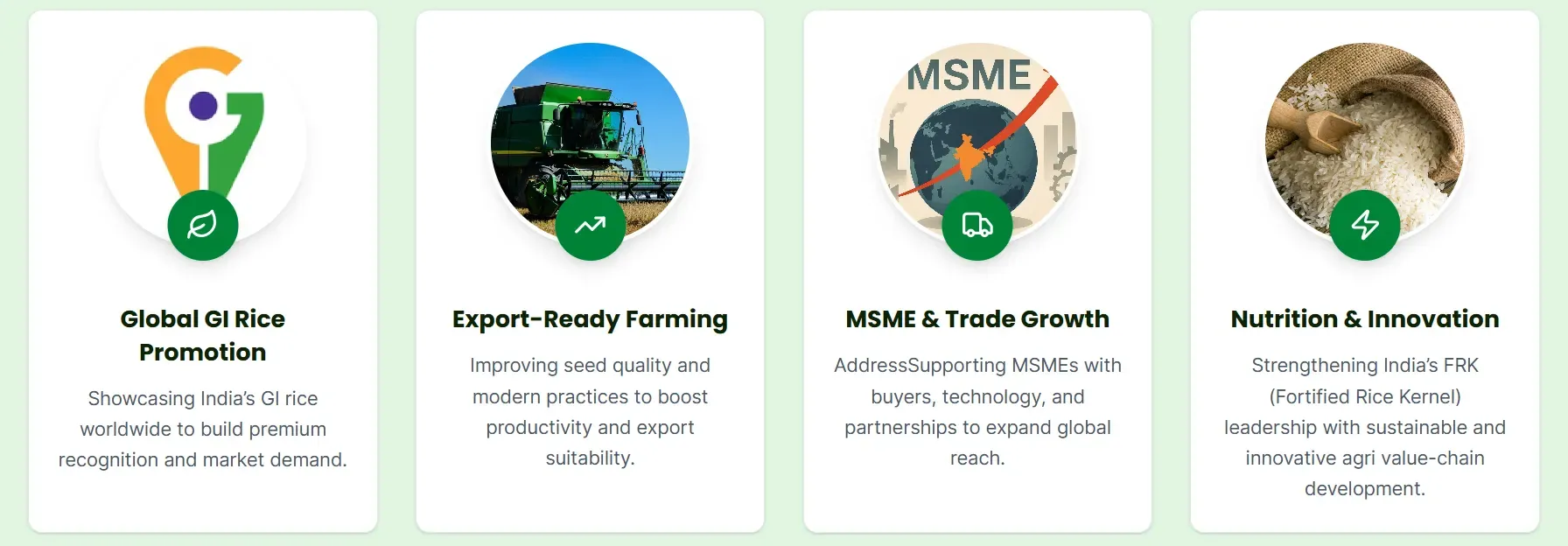 Strengthening India’s position in international rice markets by connecting exporters with global buyers and importers.