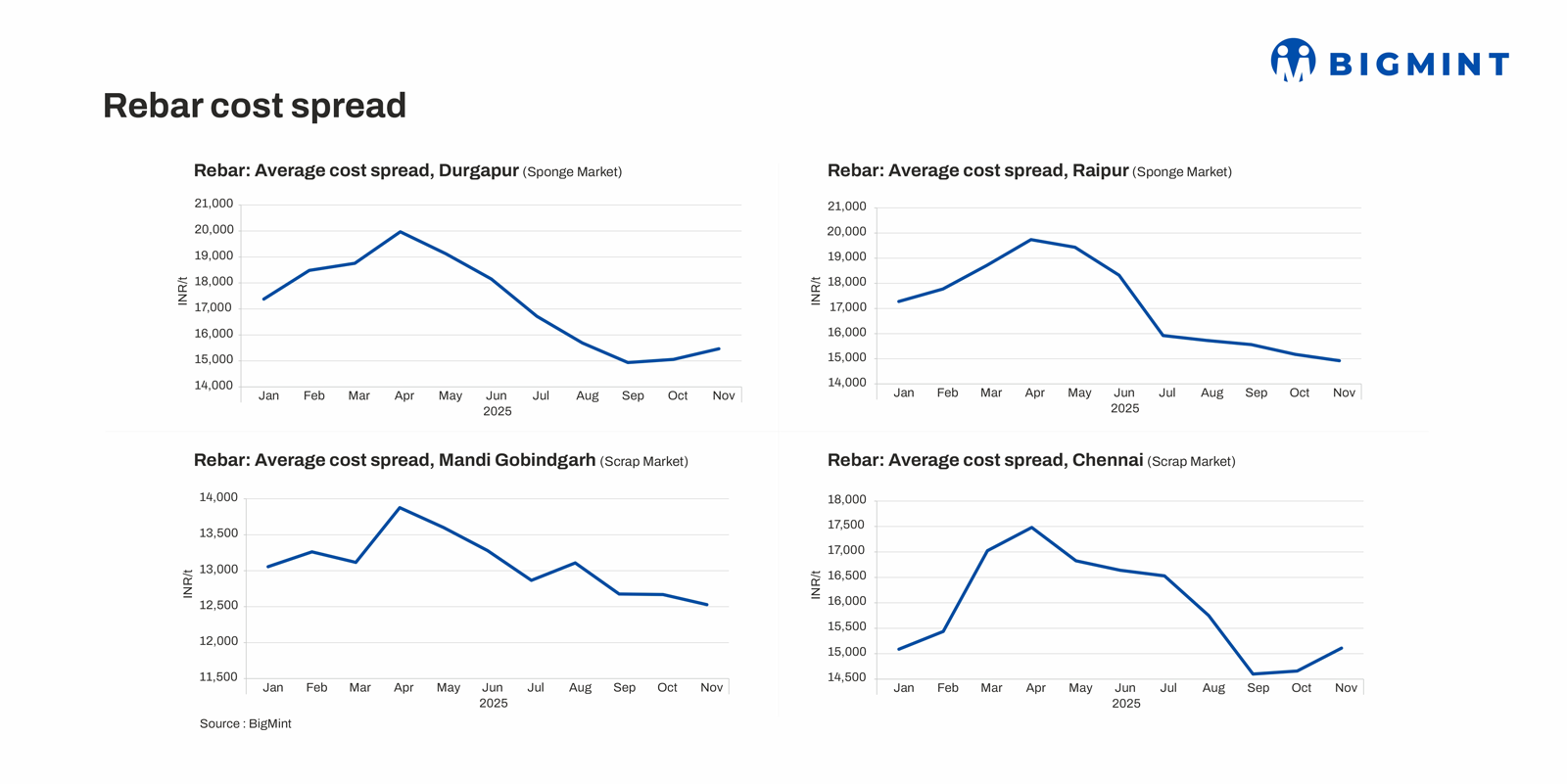 The steady rise in sponge iron output and its competitive pricing will continue to cap scrap demand, limiting any immediate upside in domestic quotations. A gradual recovery may emerge in early 2026 as infrastructure projects resume post-winter and government spending accelerates ahead of the new fiscal year, potentially lending modest support to both steel and scrap prices.
