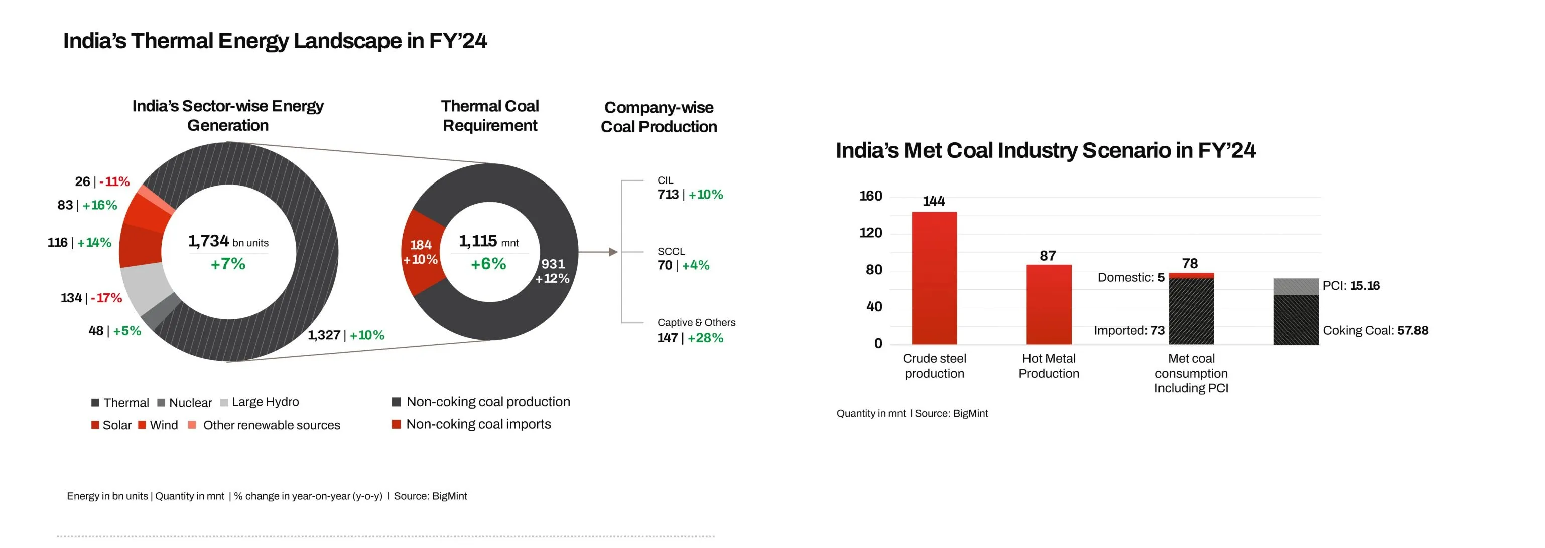 India's imports of metallurgical coal in January-May 2024 (5MCY'24) stood at 31.7 million tonnes (mnt), an increase of 9% y-o-y compared with 29.1 mnt in 5MCY'23 as per BigMint data, on higher crude steel and hot metal production.