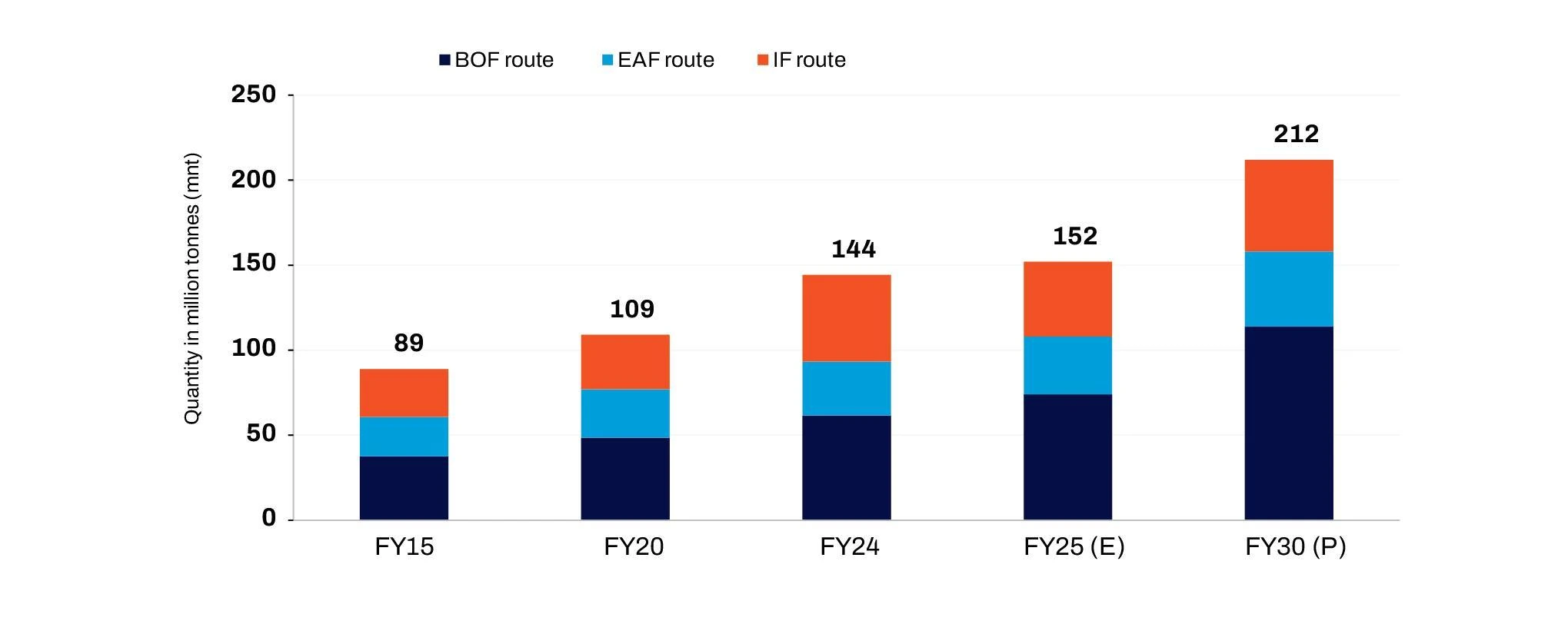 India aimed to achieve a steel capacity of 300 million tonnes by 2030-31 according to the National Steel Policy 2017. While the industry was making progress, the COVID - 19 pandemic hasset back the target by 2 - 3 years.As a result, the capacity of crude steel is expected to reach 242 million tonnes by 2030.