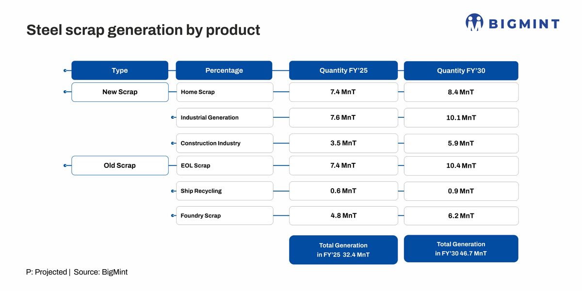 As per BigMint data, domestic generation of ferrous scrap will touch 46.7 mnt by FY'30 from 32.4 mnt currently. As an important steel industry decarbonisation tool, scrap usage will be prioritised and policy focus is on the creation of an organised value chain in the country.