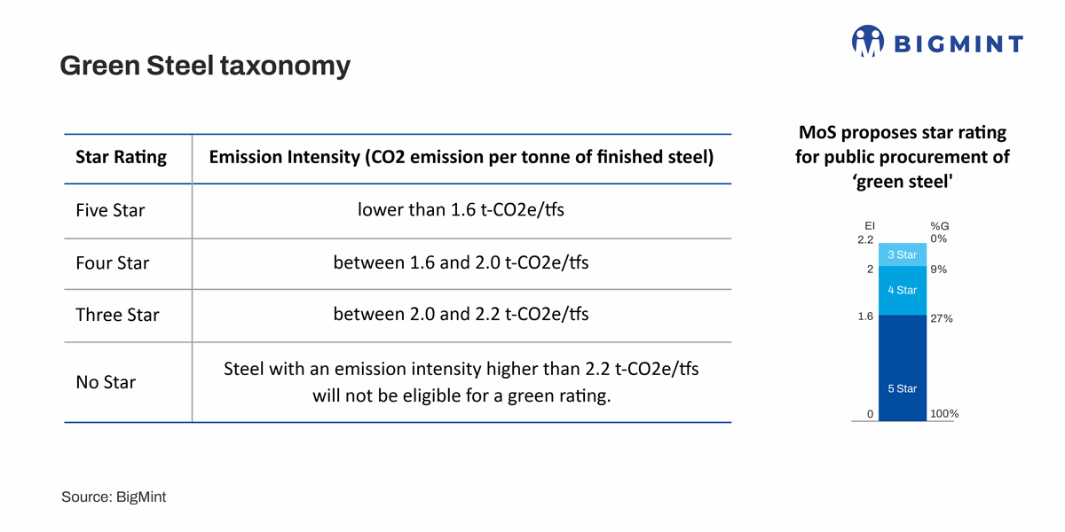 The Ministry has established a star-rating system based on the carbon dioxide equivalent (CO2e) emissions per tonne of finished steel produced: