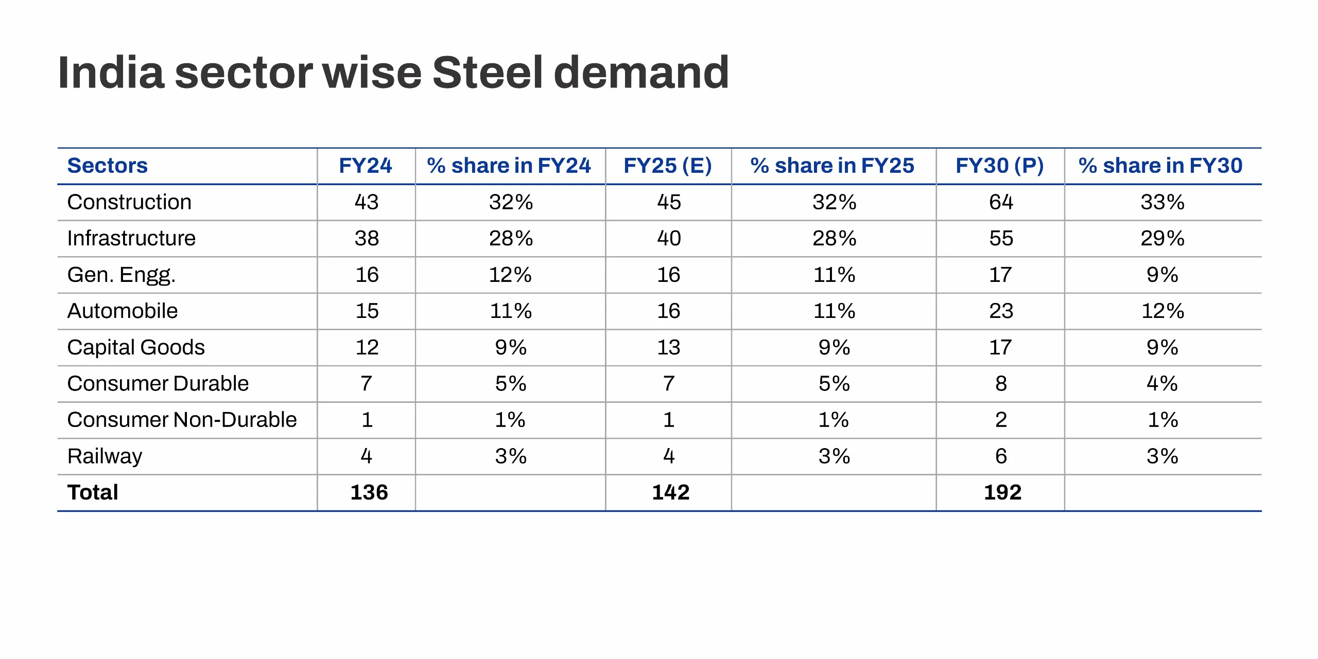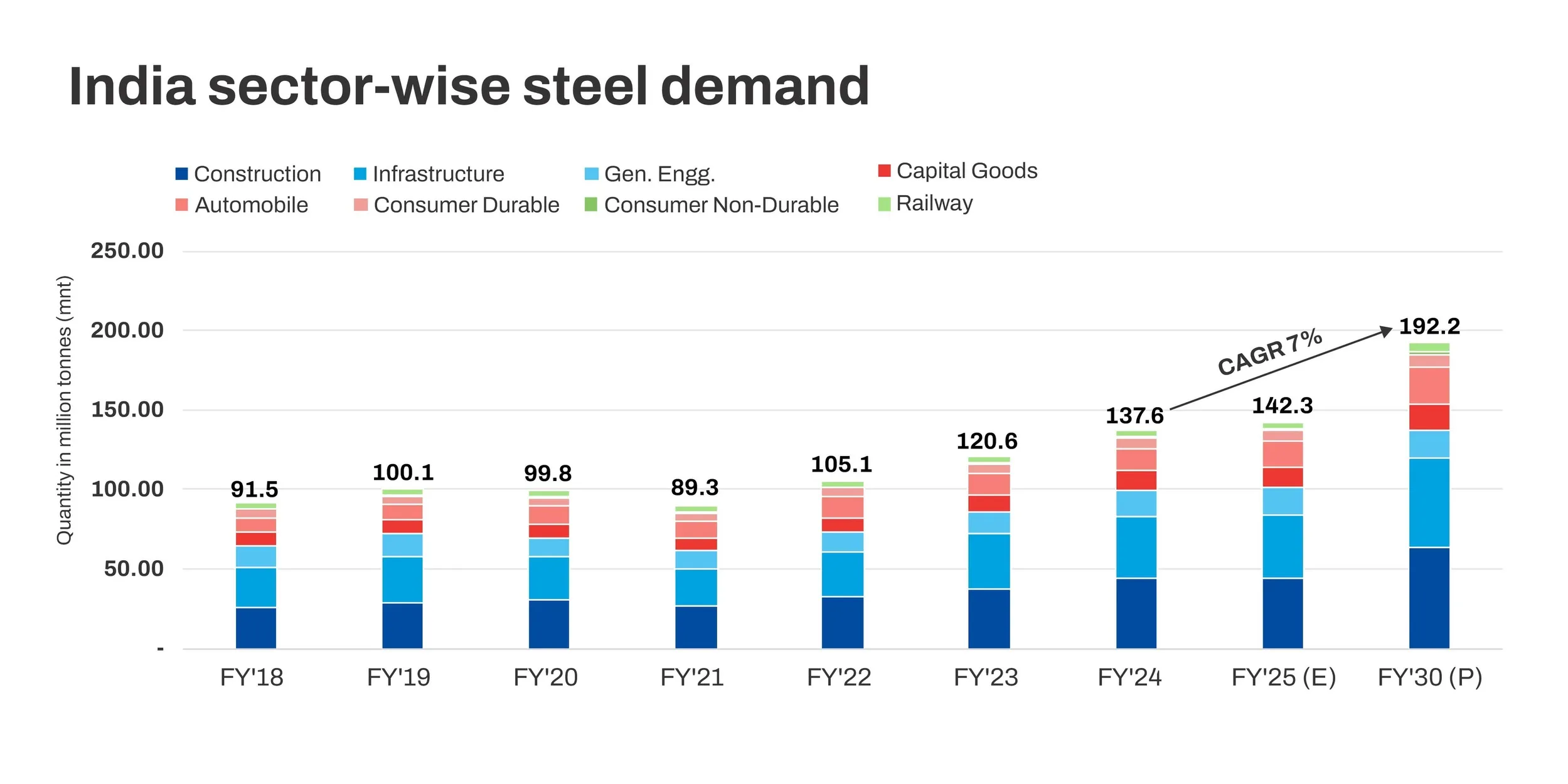 The infrastructure and construction sectors remain the largest consumers of steel, accounting for 61% of the demand, followed by general engineering (11%) and automotive (10%). As India’s infrastructure and industrial growth intensify, the country’s steel production is expected to reach 210 million tonnes (mnt) by FY30, a substantial increase from the current 144 mnt in FY24.