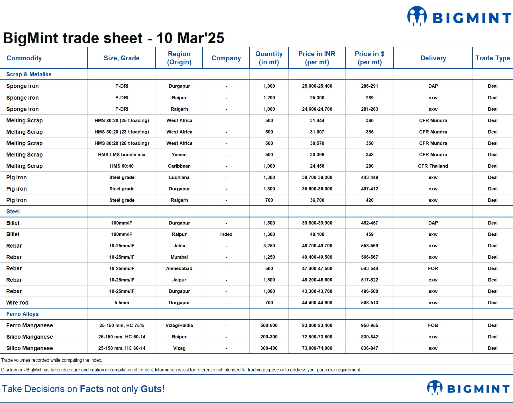 BigMint's daily trade sheet - 10 Mar'25