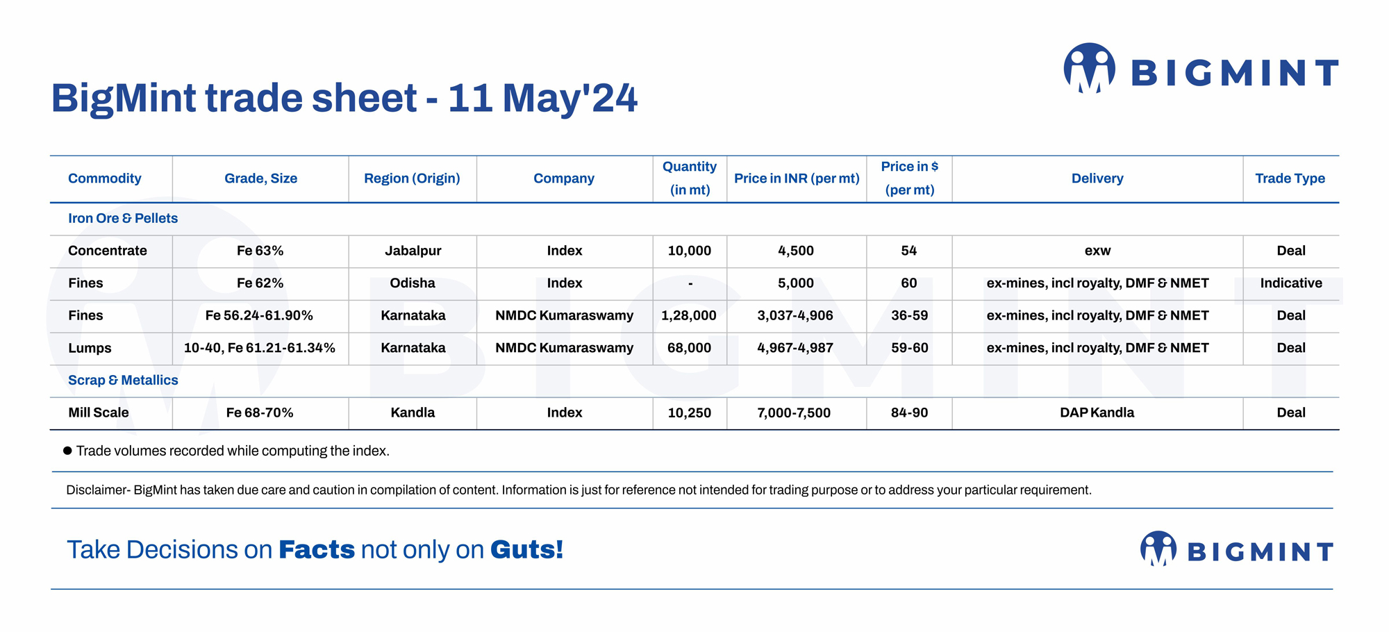 BigMint's Daily Trade Sheet - 11 May'24