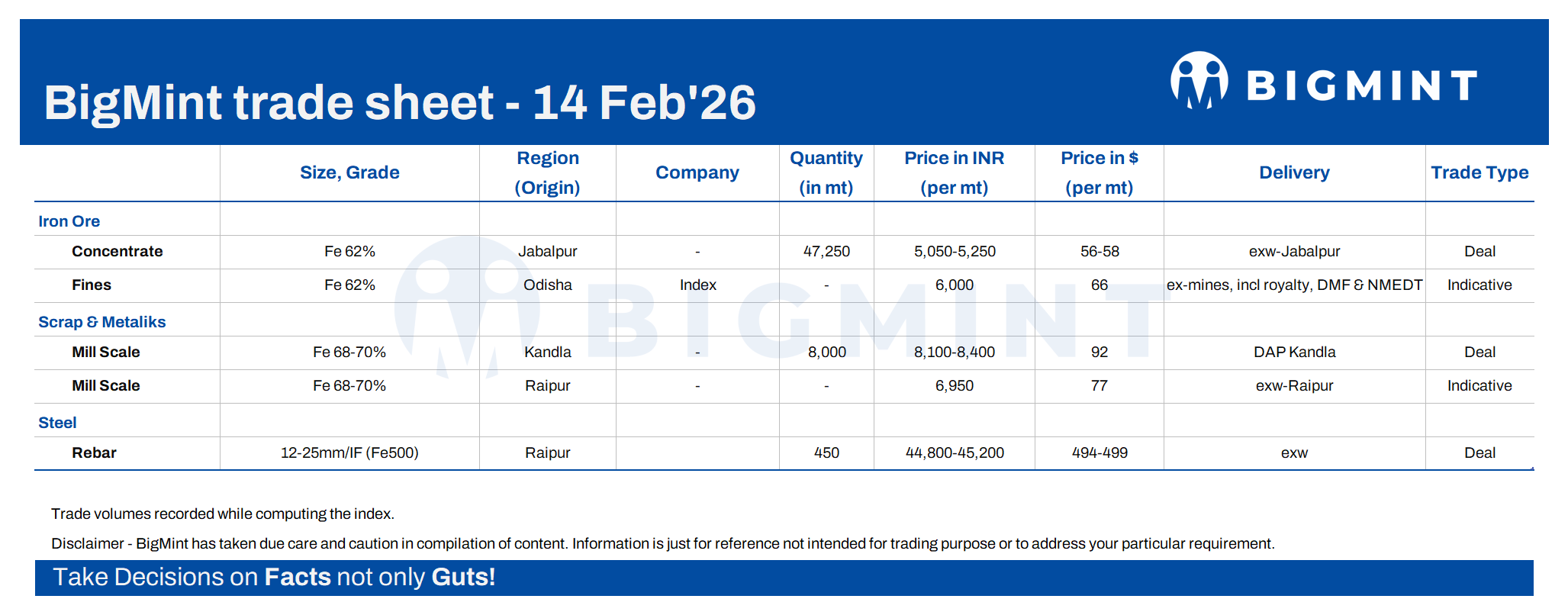 BigMint's daily trade sheet - 14 Feb'26