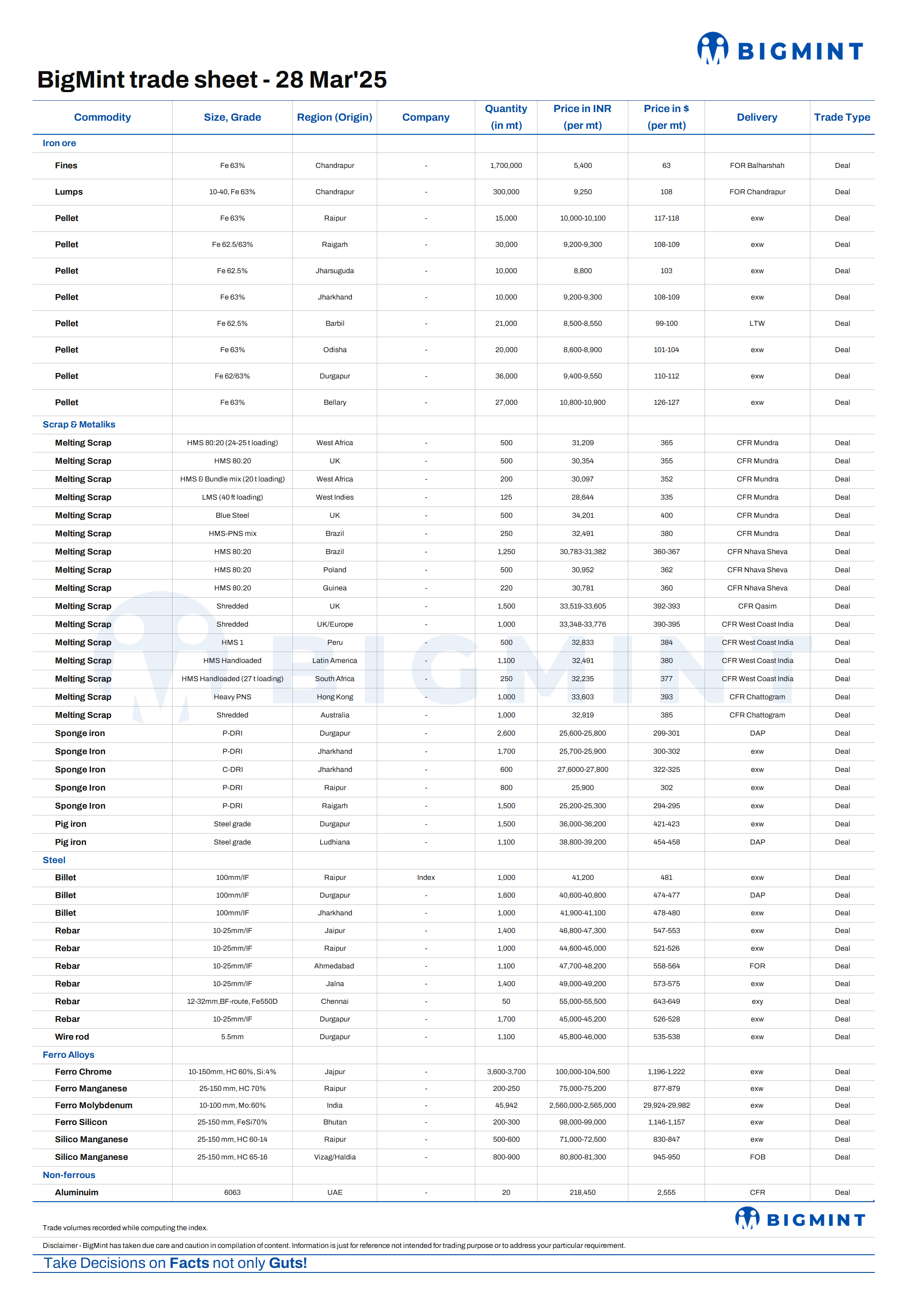 BigMint's daily trade sheet - 28 Mar'25