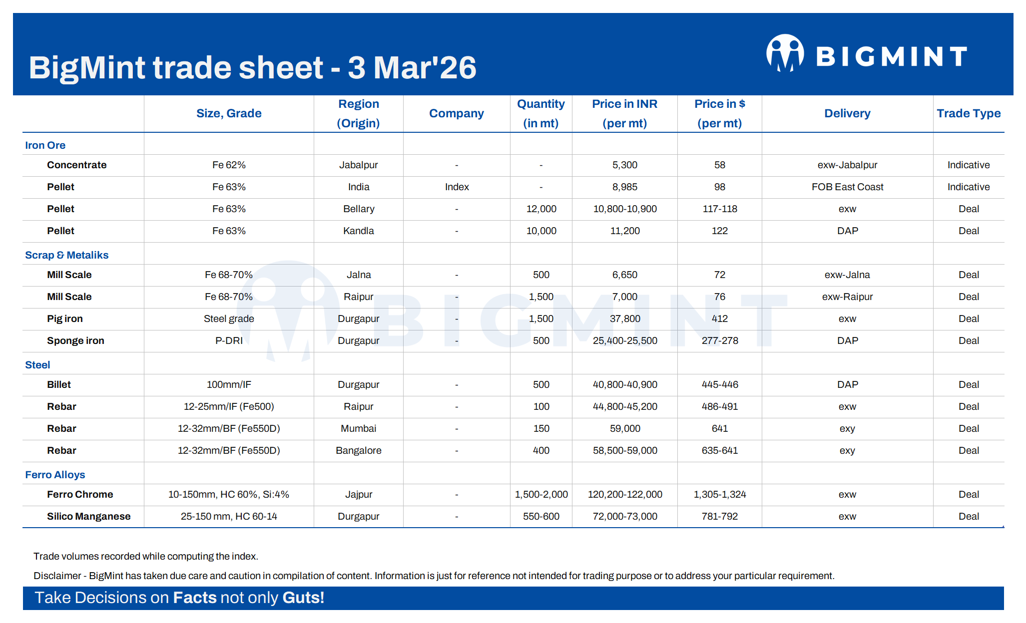 BigMint's daily trade sheet - 3 Mar'26