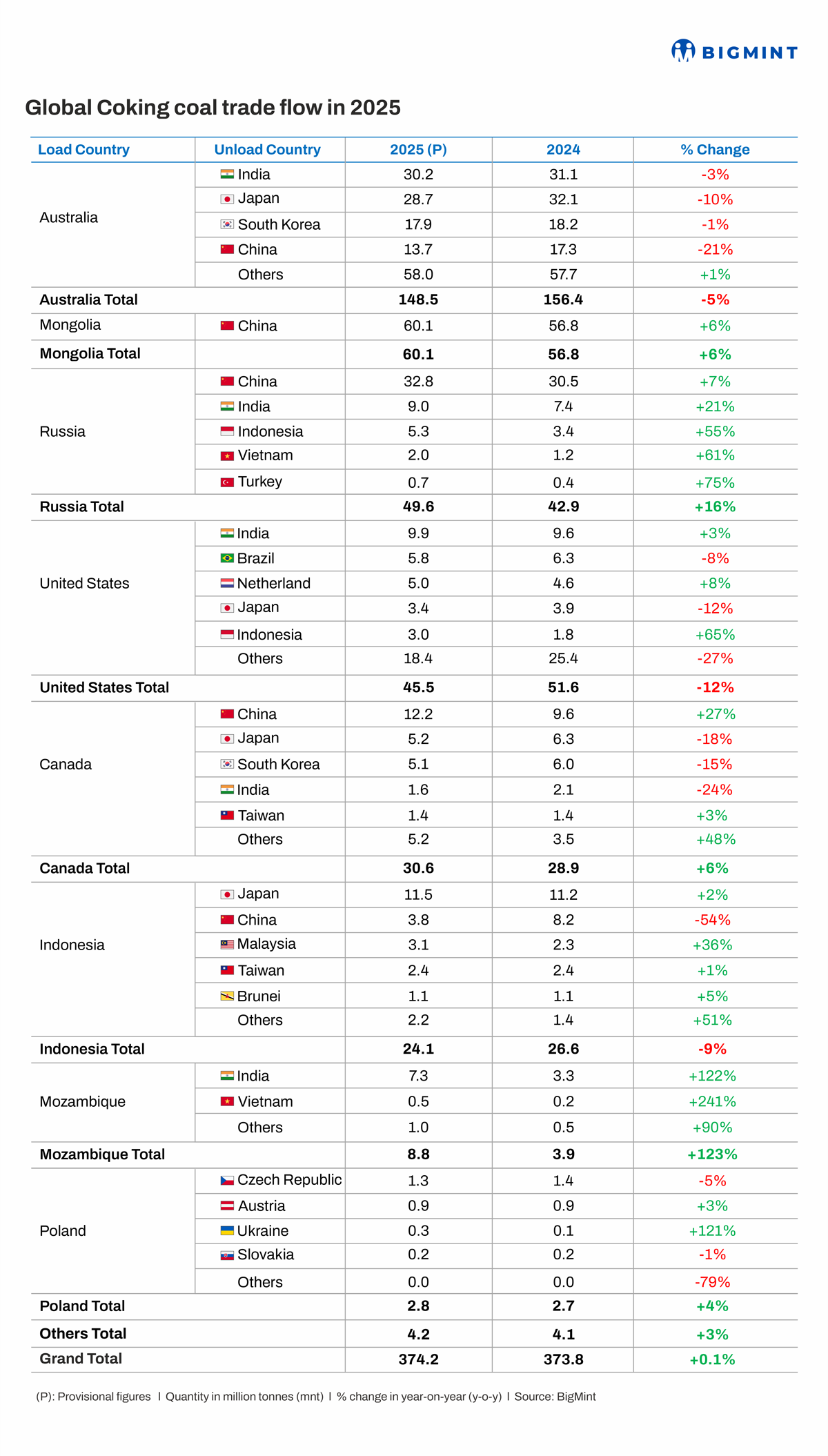Morning Brief: Global coking coal trade in CY25 recorded negligible growth to 374 mnt as weak steel demand across key Asian markets limited import expansion, forcing a redistribution of trade flows rather than volume growth. Buyers shifted sourcing toward cost-competitive and logistically advantaged suppliers, with discounted cargoes and proximity to end-users reinforcing this transition.