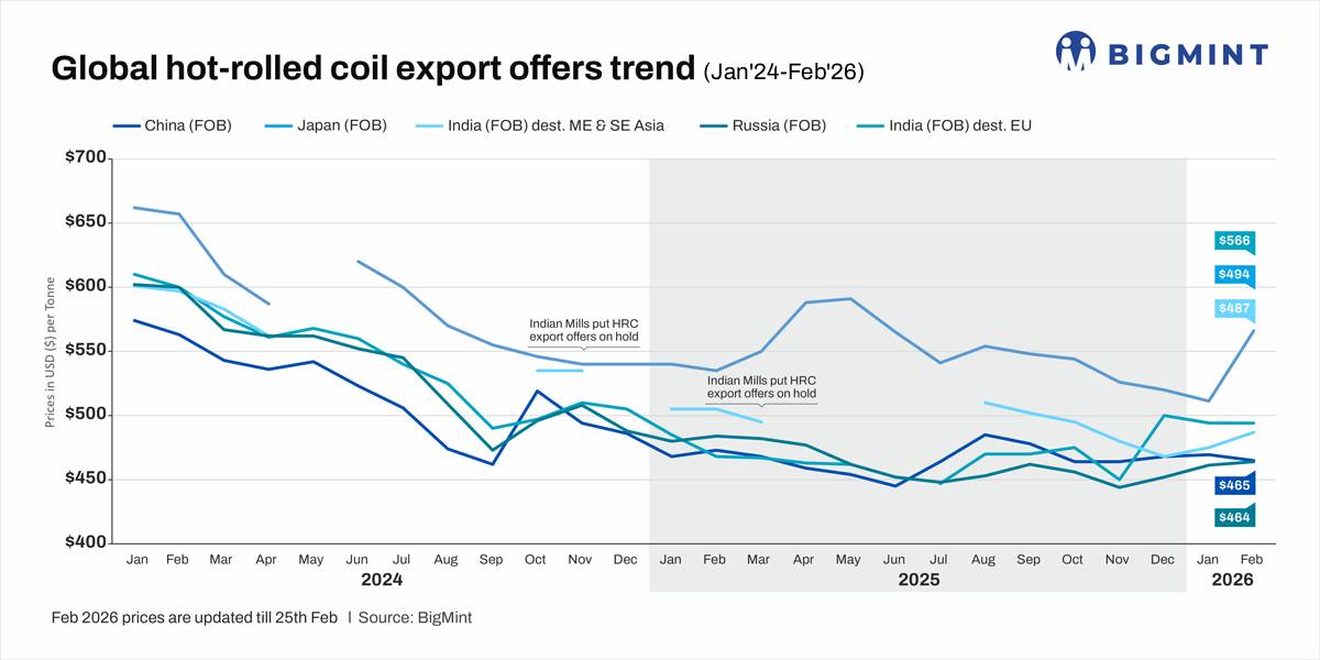 - Domestic price surge in EU pushes up Indian HRC export offers