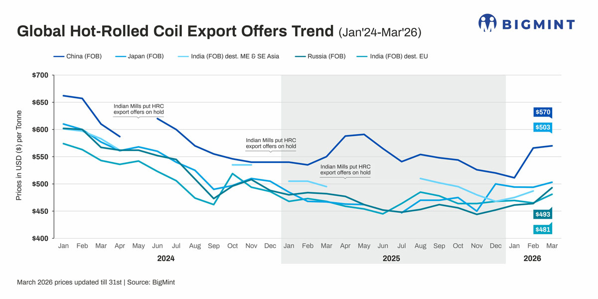 Similarly, HRC export activity to the Middle East came to a standstill, with no firm Indian offers heard. Indian mills also prioritised domestic sales due to better realisations amid tight supply.