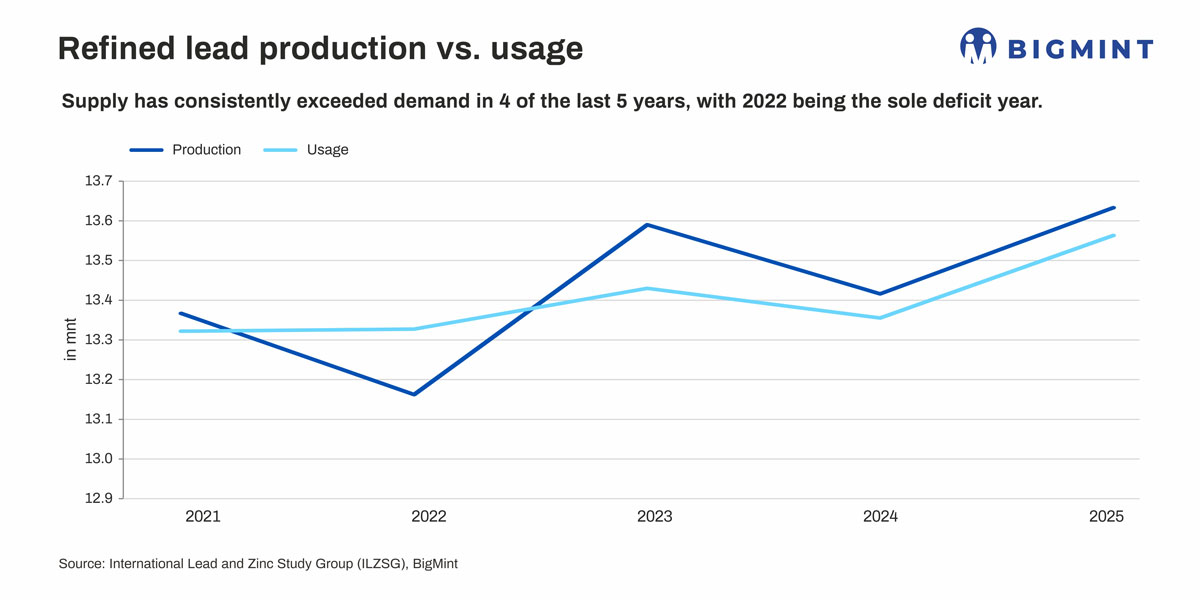Overall, the lead market is increasingly characterised by a low-amplitude but persistent imbalance, where incremental supply consistently exceeds absorption, exerting sustained pressure on prices.