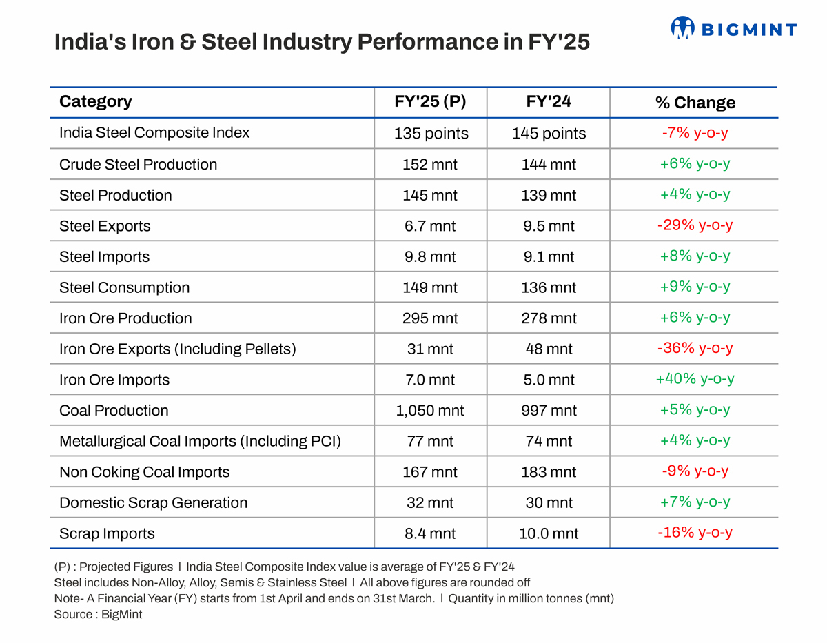 This is expected to give a fillip to higher domestic capacity utilisation, especially by the primary steel producers, amid expanding steelmaking capacity. BigMint projects India's crude steel production to reach around 165 mnt in CY'25, with consumption edging up to 152 mnt.