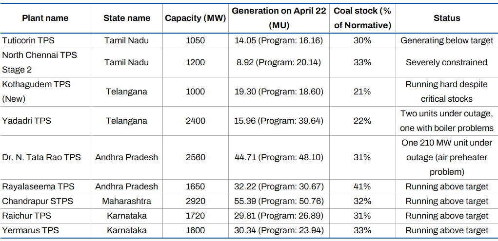 Now let us look at the critically stressed plants in southern and western India. The CEA generation data for 22 April shows that many of these plants are still running hard -- but they are running on borrowed time.