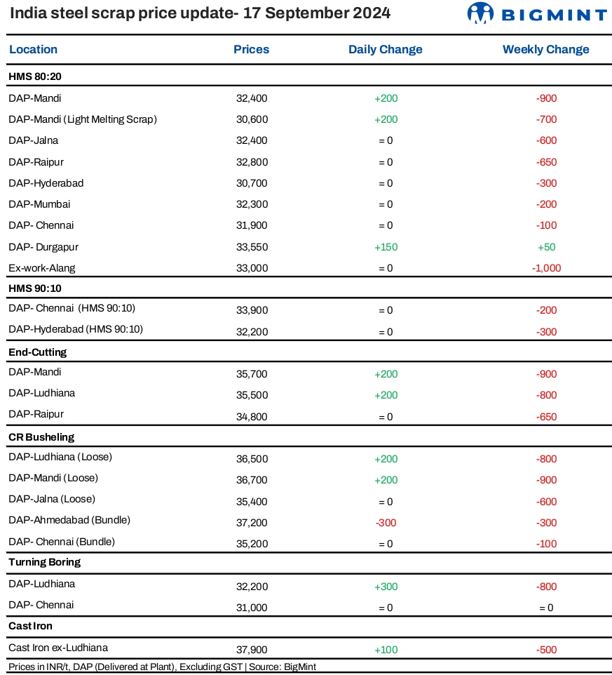 India: BigMint's scrap index rises by INR 200/t on improved trade -17 Sept