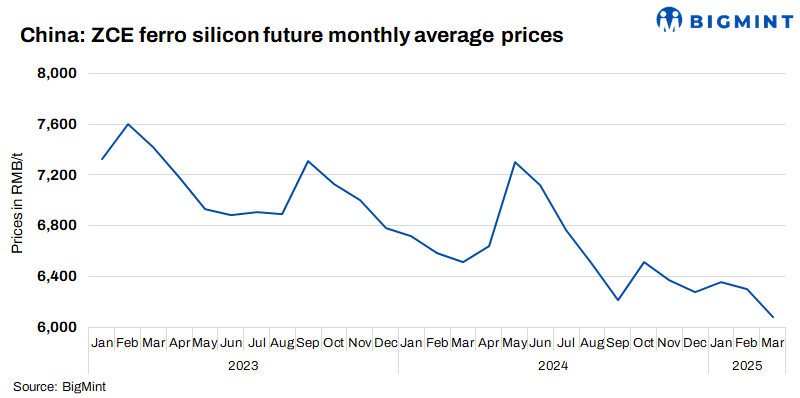 Trends in Chinese market: Ferro silicon (Si:75%) prices in China stood at RMB 6,310/t ($869/t) exw-Inner Mongolia, down marginally by RMB 10/t ($1/t) w-o-w. The ferro silicon market showed some signs of improvement in both downstream demand and price inquiries. In the short term, the ferro silicon market is expected to remain stable with slight price adjustments, while longer-term demand may see gradual improvement.