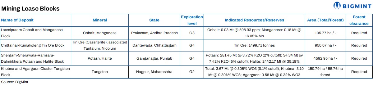 - Blocks on offer include 4 mining leases, 19 composite licences