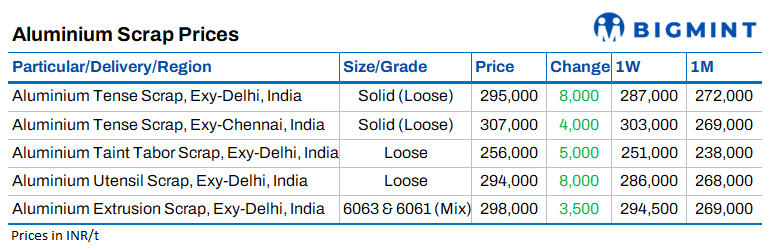 Domestically, aluminium prices remain firm, while the scrap market continues to stay tight across both northern and southern regions, especially for casting-grade Tense scrap, due to acute supply constraints.