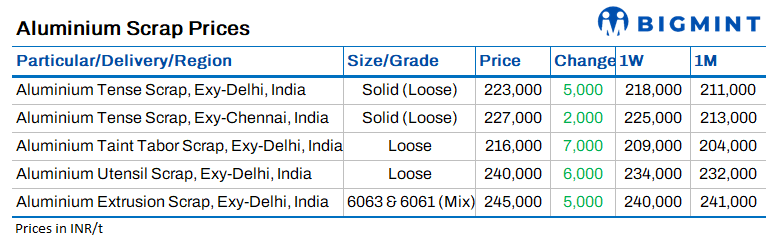 India's imported aluminium scrap prices recorded a sharp week-on-week rise on 3 March 2026, supported by gains in LME aluminium prices and ongoing geopolitical tensions, while domestic Tense scrap prices also remained firm amid tight local supply conditions.