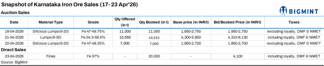 Karnataka iron ore sales scenario (17-23 April 2026)