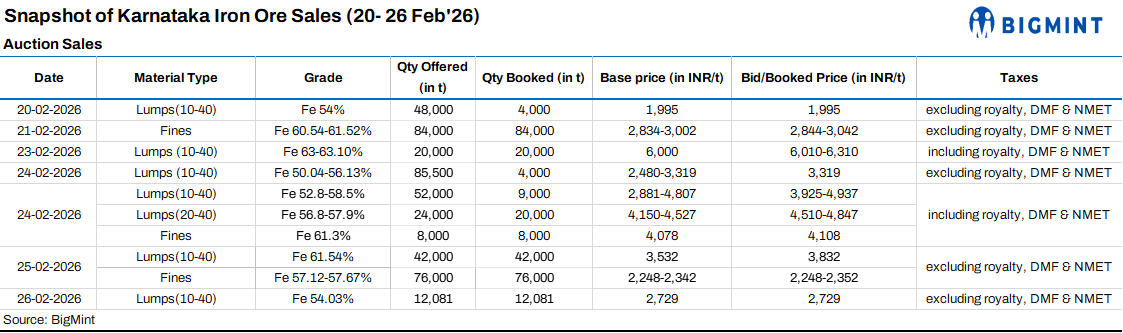 Karnataka iron ore sales scenario (20-26 February 2026)