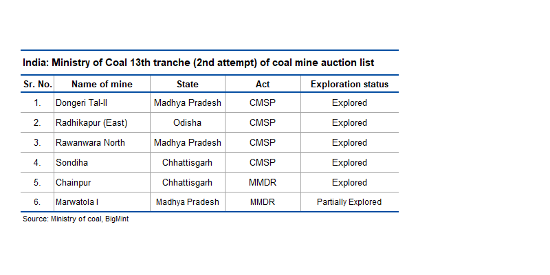 Additionally,Ministry of Coal has also launched the second attempt of the 13th tranche under the Mines and Minerals (Development and Regulation) Act, 1957. A total of six coal blocks have been offered for auction across key coal-bearing states - Madhya Pradesh, Odisha, and Chhattisgarh.