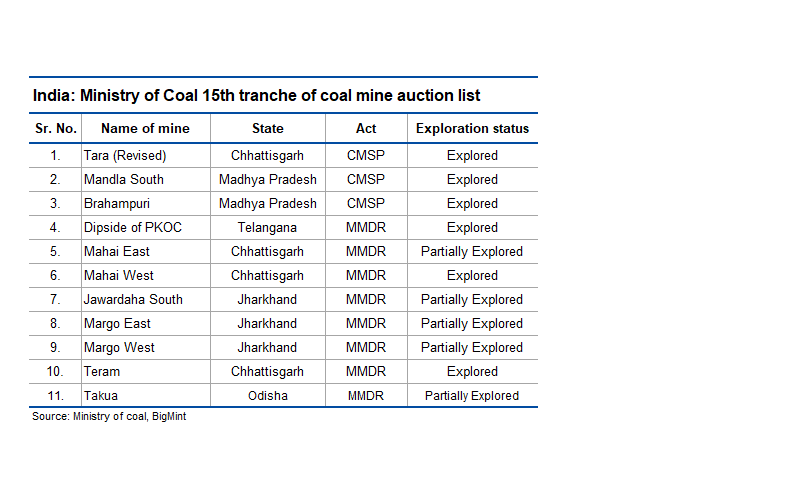 India: Ministry of Coal announces 15th round of commercial coal mine auctions