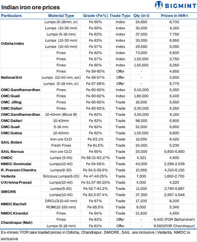 Meanwhile, Odisha-based private miners revised their offers during the week, with a mixed trend observed across categories. While most miners maintained their offer levels, a few opted to reduce iron ore fines prices in response to softer demand. Some fresh deals were also reported in the market, indicating continued, albeit cautious, buying interest.