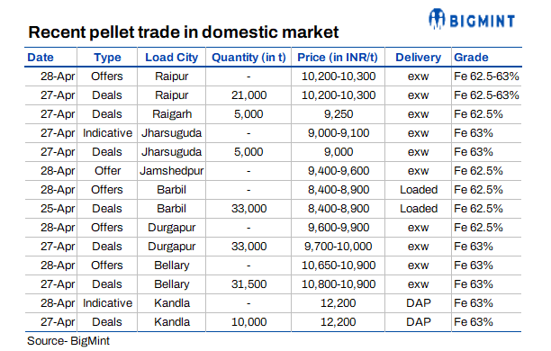 Furthermore, some buyers are currently focused on lifting material from Odisha and Maharashtra for earlier iron ore lumps deals (booked at INR 10,200/t DAP from Maharashtra), which have further reduced immediate demand for fresh pellet procurement in the Raipur market.