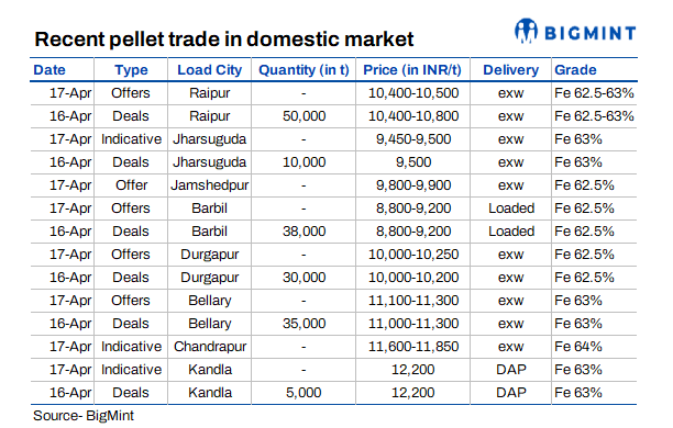 Meanwhile, market attention has shifted toward the upcoming Odisha Mining Corporation (OMC) auction scheduled for 18 April. Several steelmakers and traders are adopting a wait-and-watch strategy ahead of the auction outcome. A source informed BigMint, "The OMC auction will set the tone for iron ore prices, which will eventually influence pellet prices as well."