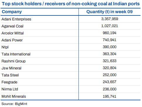 Portside thermal coal inventories across India declined 3.6% w-o-w to 13.14 mnt in the week ended 27 February from 13.63 mnt in the previous week, extending last week's correction after the recent peak. Owing to sharp hike in import offers and ambiguous position of RKAP from Indonesia led the buyers on hold for any bookings.