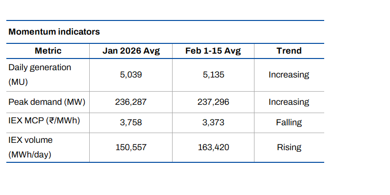The first half of February 2026 paints a clear picture of a power sector entering a new phase. Generation growth is steady rather than spectacular, but the composition is shifting quickly. Demand is strengthening, yet prices are falling -- a sign of improved supply depth and growing renewable influence. And the exchange is evolving from a balancing mechanism into a central procurement platform.