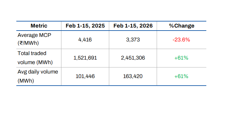 If the physical system is changing, the spot market reflects it even more clearly. On the Indian Energy Exchange (IEX), the first half of February saw both a surge in volumes and a collapse in prices.