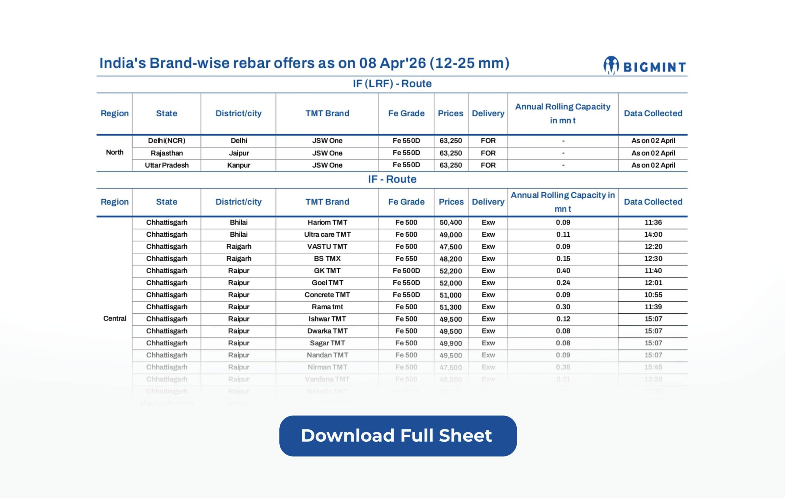 As our valued subscriber, we are happy to share with you a comprehensive brand-wise list of rebar offers spanning some 64 producers as of 08 Apr 2026.