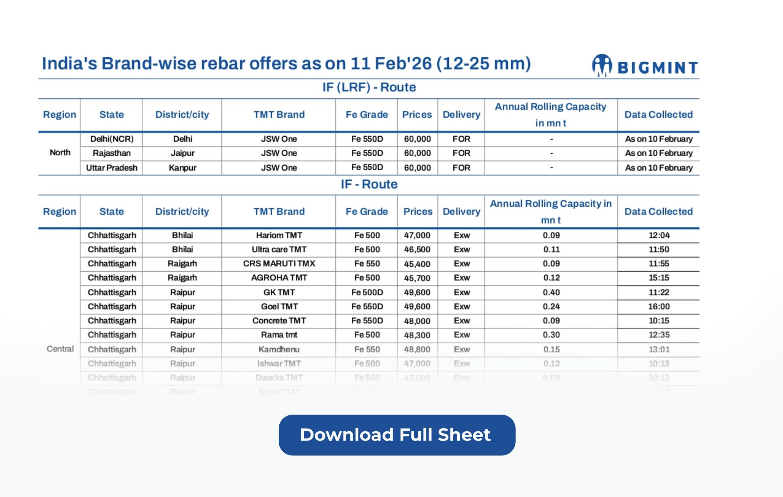 As our valued subscriber, we are happy to share with you a comprehensive brand-wise list of rebar offers spanning some 65 producers as of 11 Feb 2026.