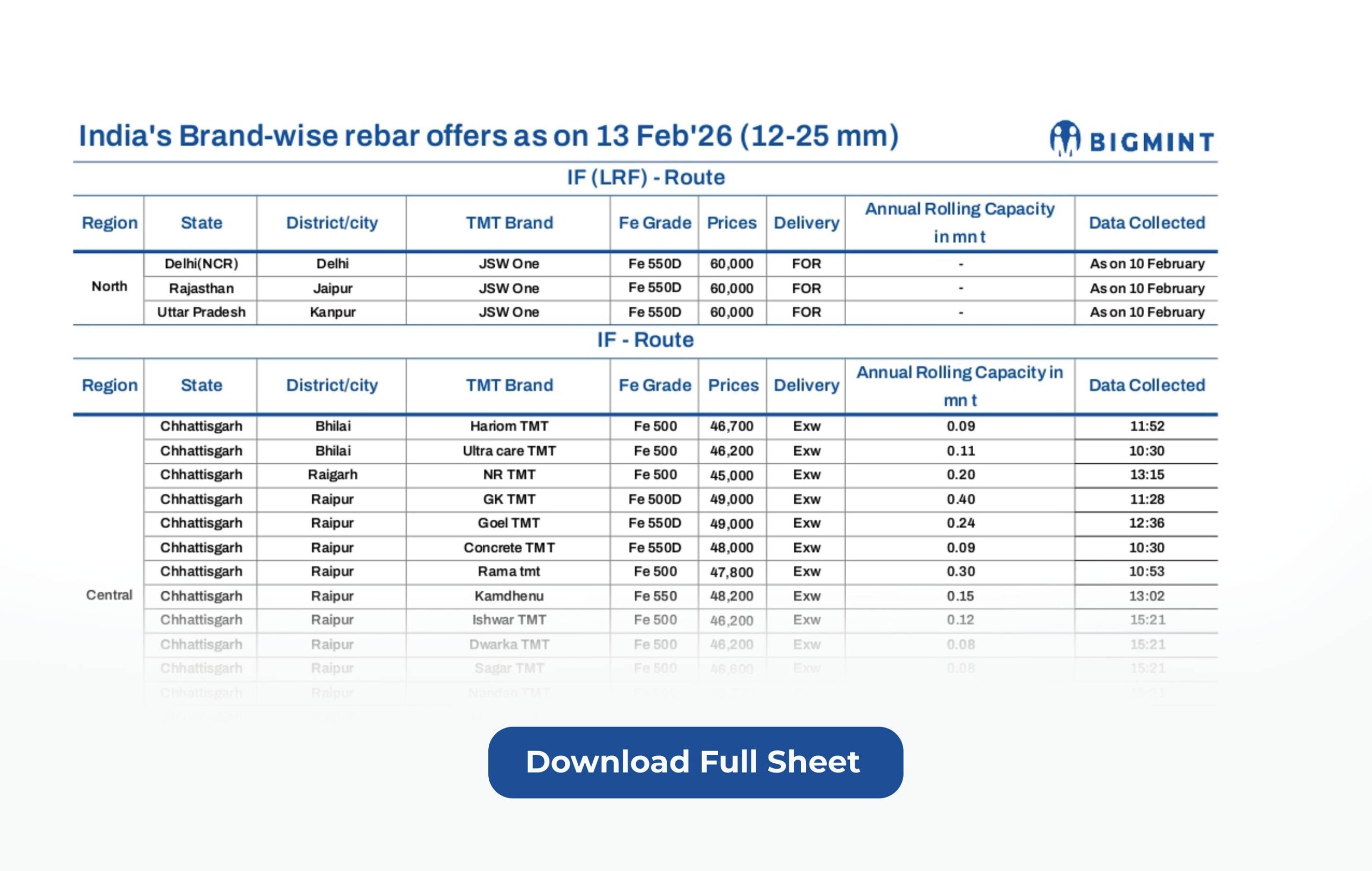 As our valued subscriber, we are happy to share with you a comprehensive brand-wise list of rebar offers spanning some 49 producers as of 13 Feb 2026.