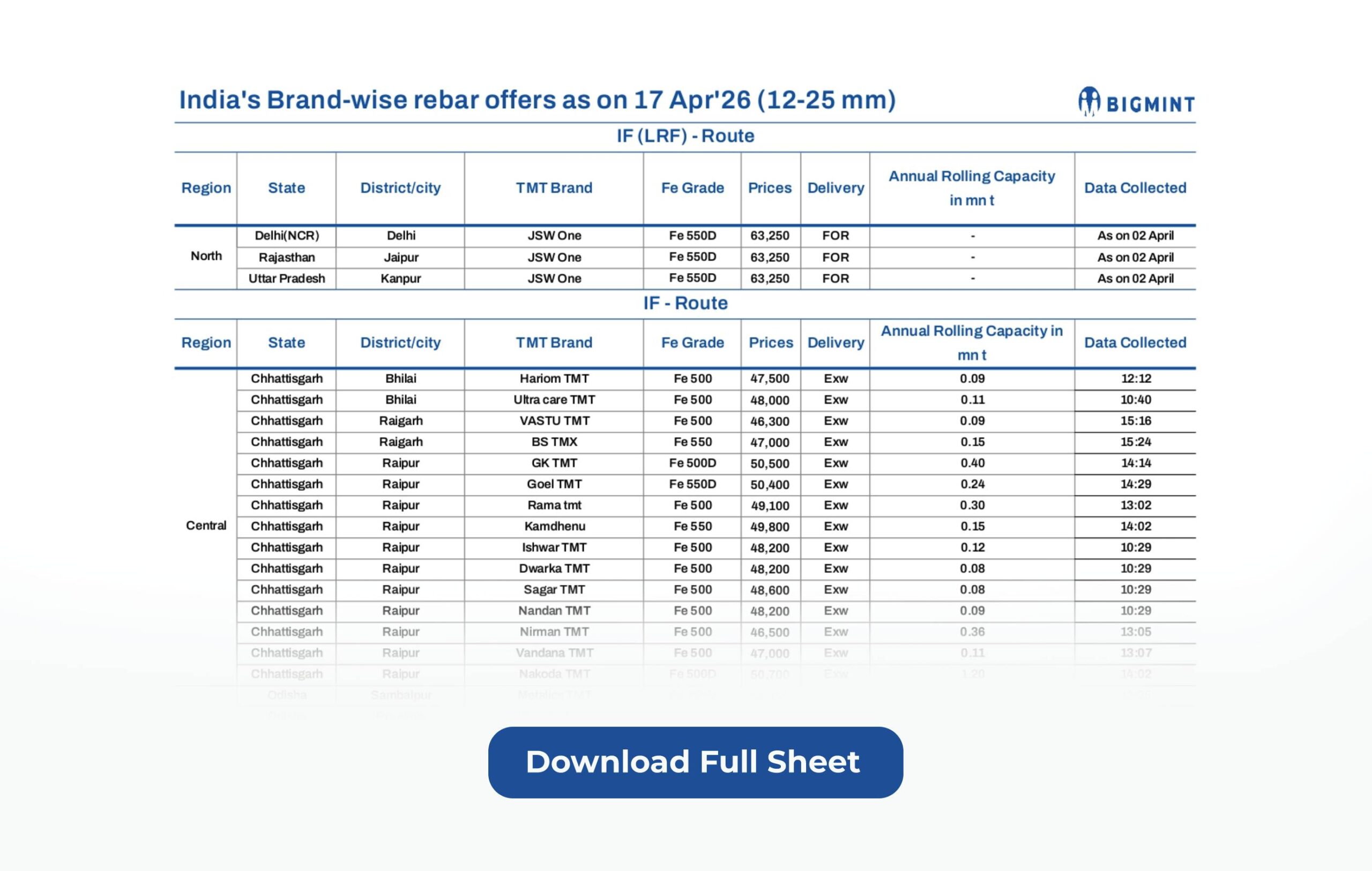 As our valued subscriber, we are happy to share with you a comprehensive brand-wise list of rebar offers spanning some 64 producers as of 17 Apr 2026.
