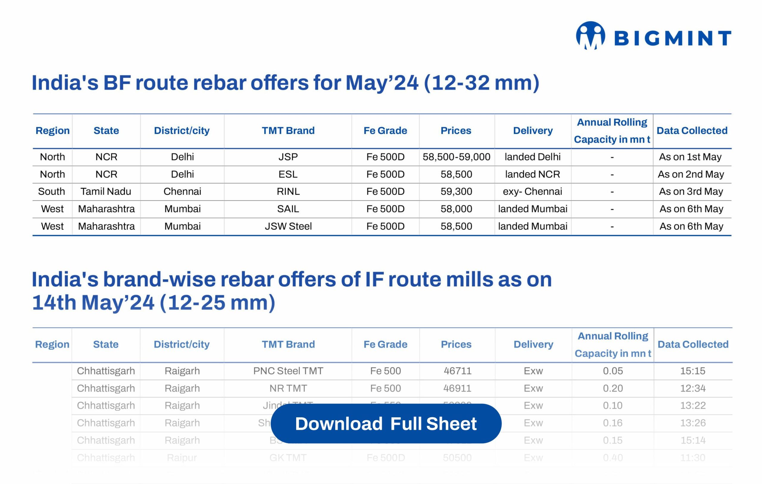 As our valued subscriber, we are happy to share with you a comprehensive brand-wise list of rebar offers spanning some 69 producers as on 14 May, 2024.