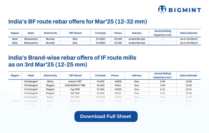 As our valued subscriber, we are happy to share with you a comprehensive brand-wise list of rebar offers spanning some 46 producers as of 3 March 2025.