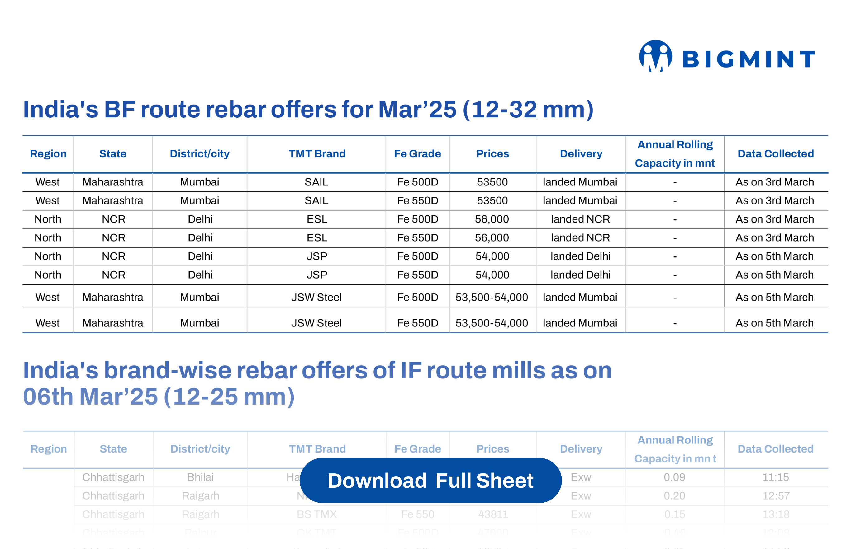 As our valued subscriber, we are happy to share with you a comprehensive brand-wise list of rebar offers spanning some 38 producers as of 6 March 2025.