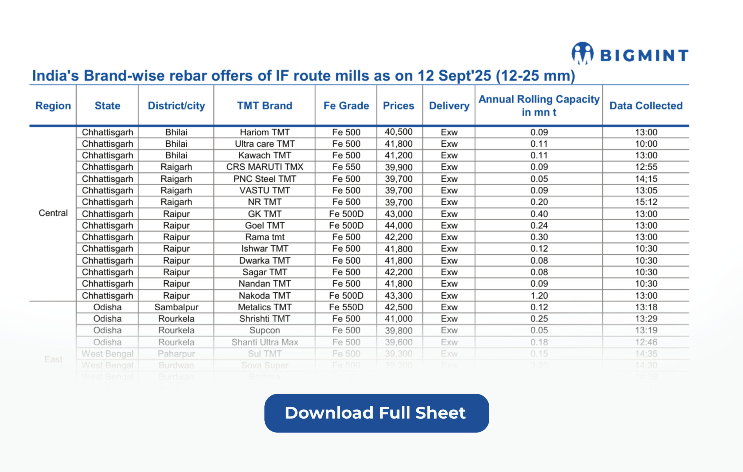 As our valued subscriber, we are happy to share with you a comprehensive brand-wise list of rebar offers spanning some 61 producers as of 12 Sept 2025.
