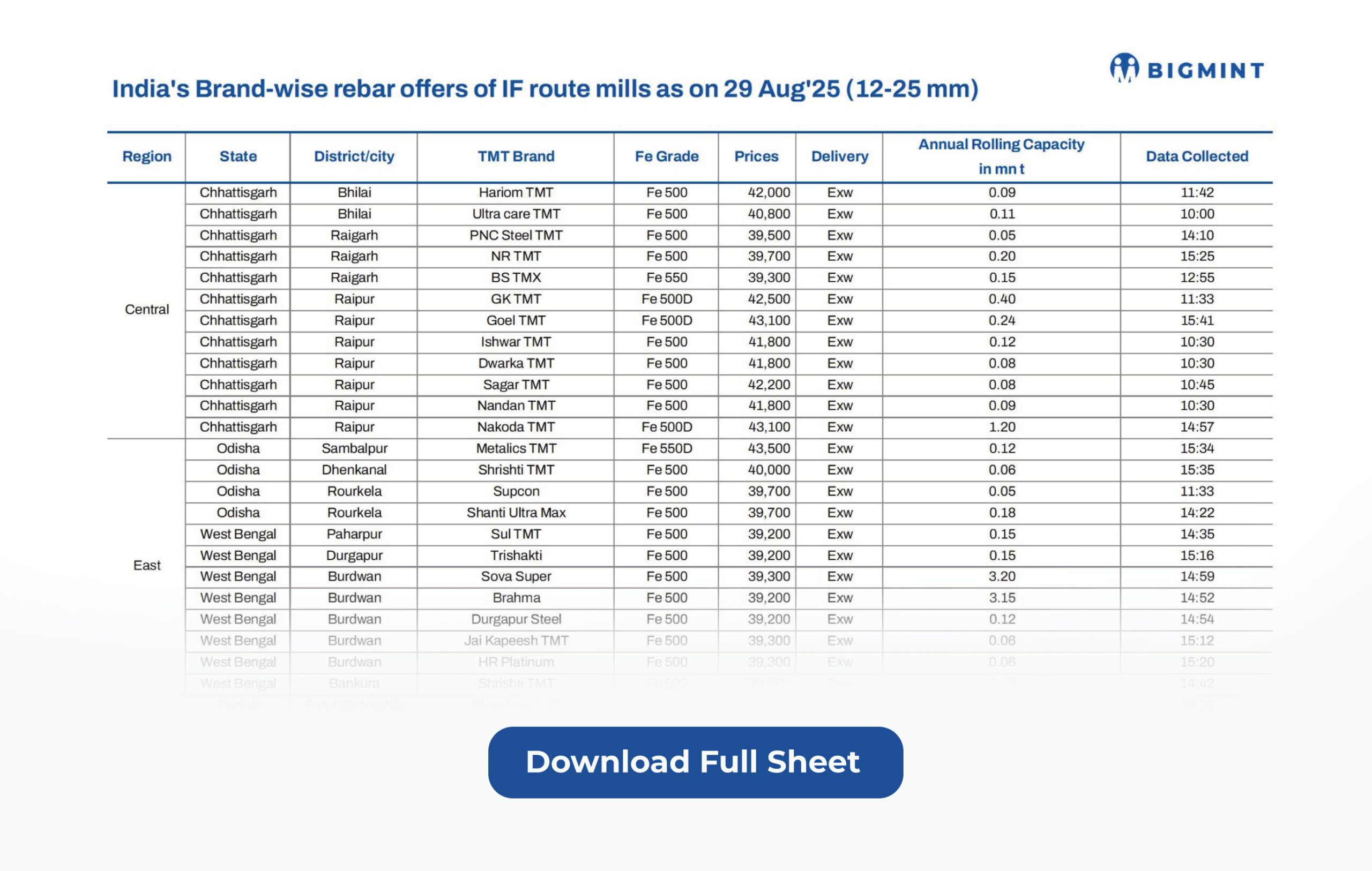 As our valued subscriber, we are happy to share with you a comprehensive brand-wise list of rebar offers spanning some 66 producers as of 29 Aug 2025.