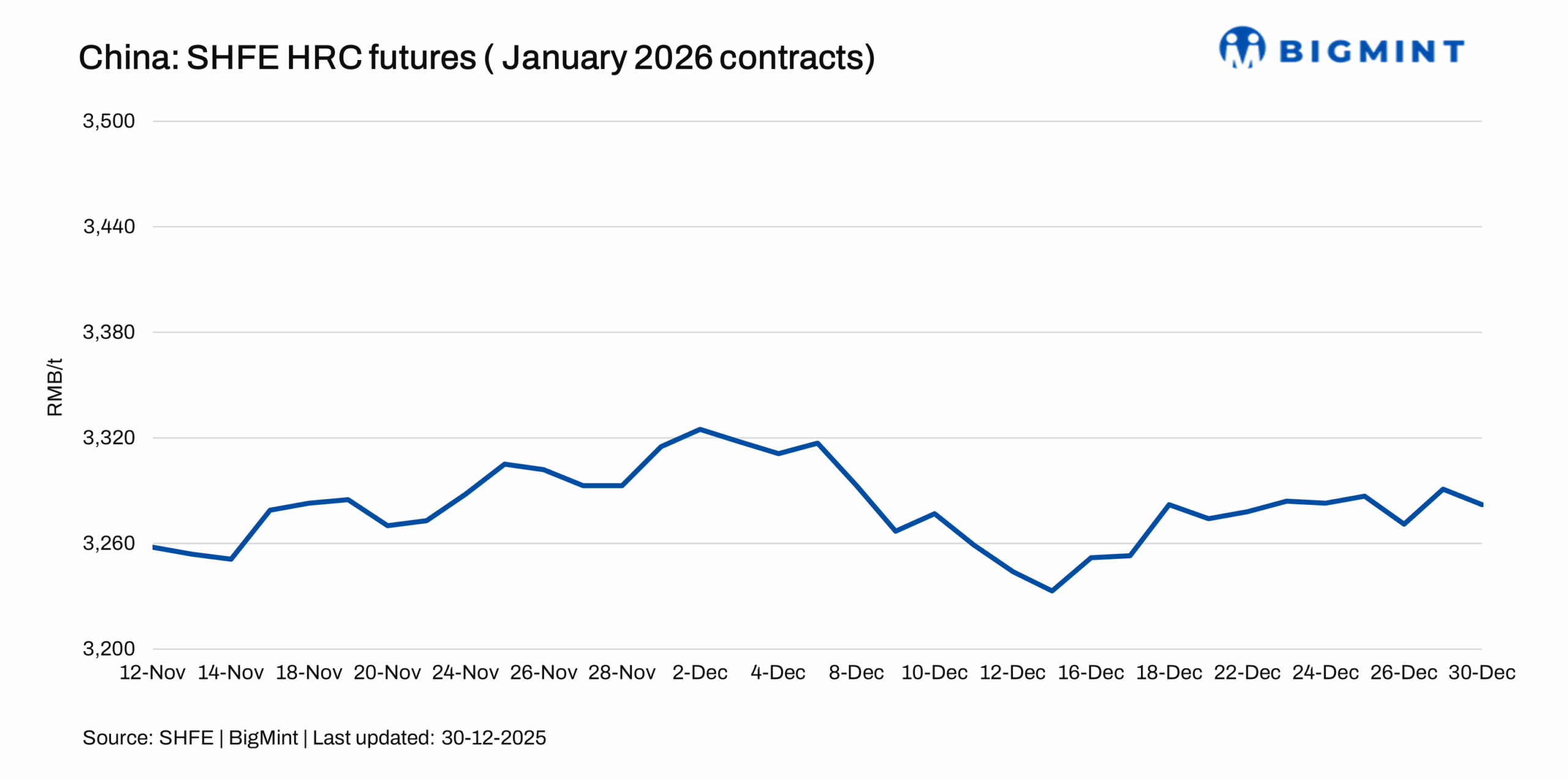 HRC January 2026 contracts on the Shanghai Futures Exchange (SHFE) remained stable w-o-w at around RMB 3,282/t ($469/t) on 30 December.