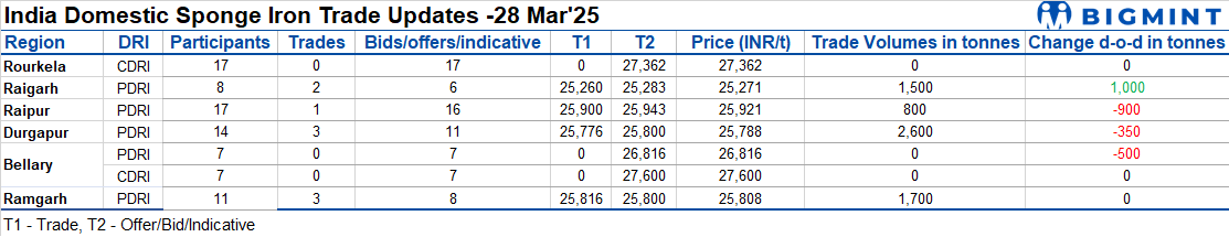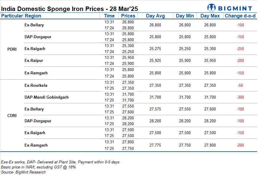 India: Sponge iron prices fall on limited buying activity - 28 Mar'25