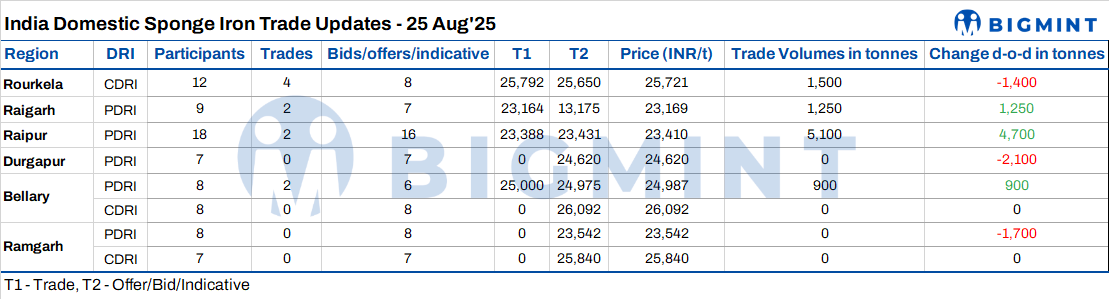 India: Sponge iron prices remain under pressure amid subdued demand - 25 Aug