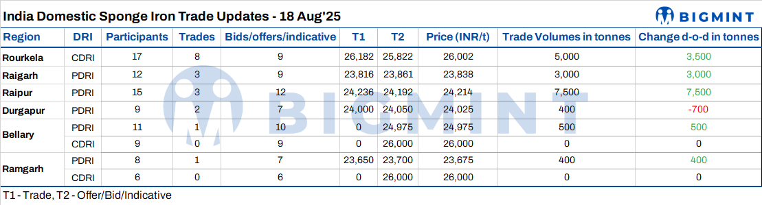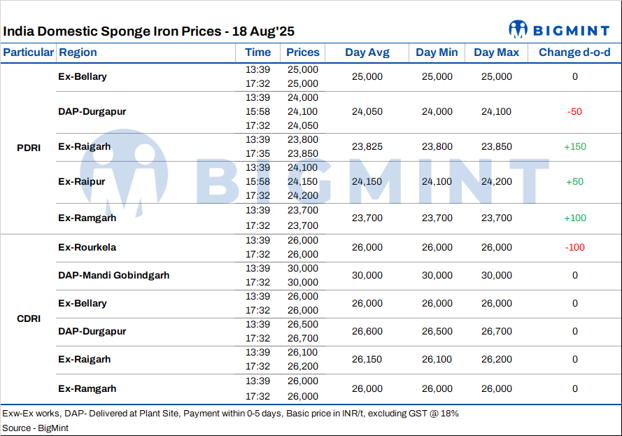 India: Sponge iron prices witness mixed trends even as bookings improve - 18 Aug