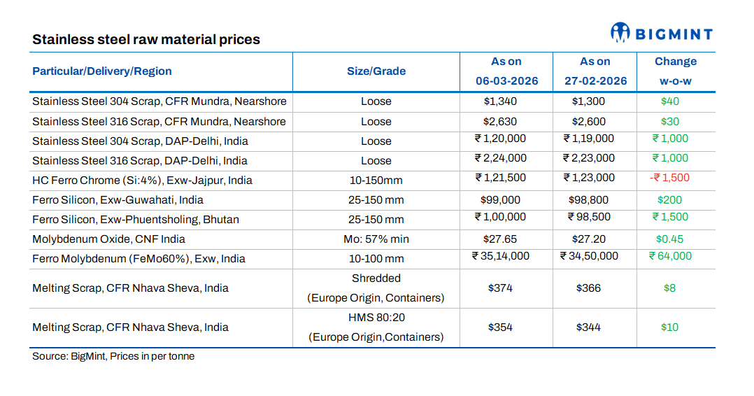 Indias stainless steel prices are expected to remain stable to firm in the near term. While domestic demand is currently subdued, rising alloy costs, restricted imports, and growing concerns over global war tensions disrupting supply chains could push prices higher once trading activity resumes after the festive slowdown.