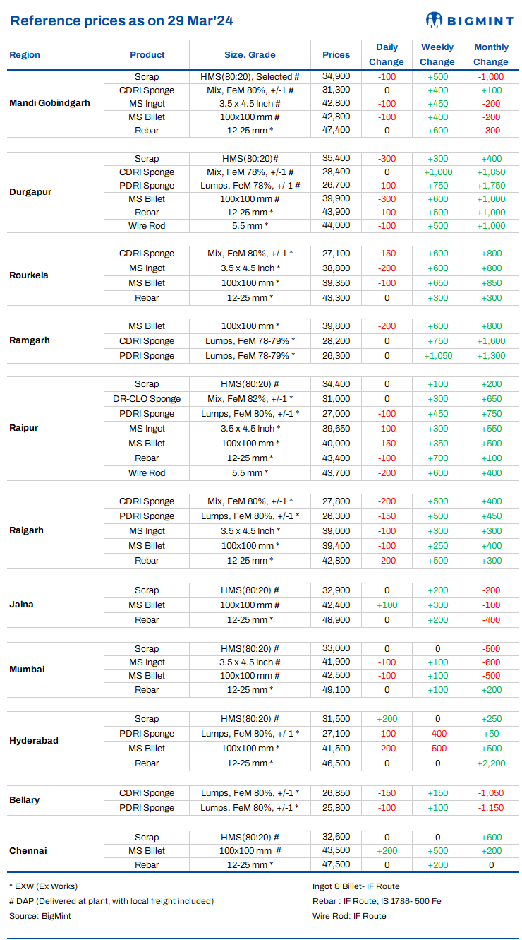 Indian DRI, billet and rebar update - 29 March