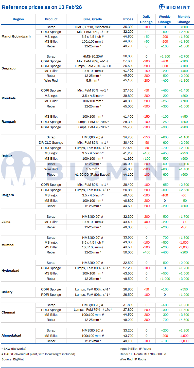 Indian DRI, billet, rebar update - 13 Feb